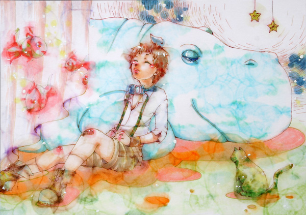 オリジナル ハイテックペン入れコピック着色、カラーレスブレンダー暈し。 いつだったか日記でかいた、某画房にて作品提出しいたしな。 カバが描きたかっただけなんです。
